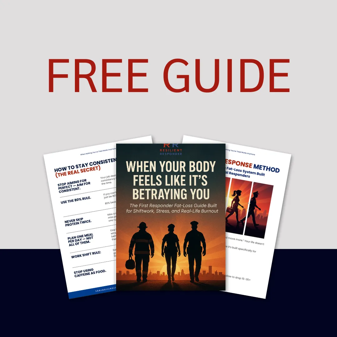 Sick of diets and fitness advice that don’t understand the demands of the job? This free guide cuts through the noise and gives you real solutions to lose fat, regain energy, and feel like yourself again — mentally and physically. Inside, you’ll get no-fluff guidance on nutrition and training. — plus a done-for-you workout and meal plan built for your schedule, your body, and your reality.